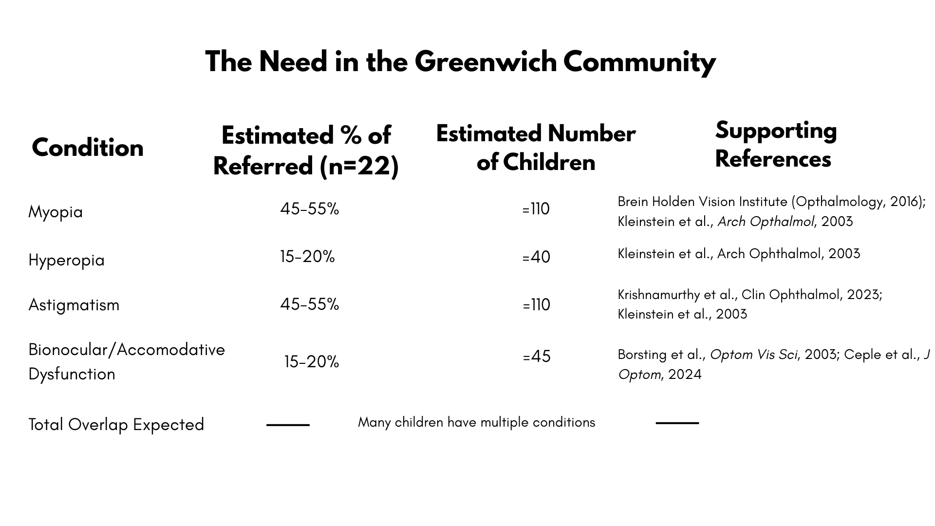 This data highlights a growing need for early and consistent eye care among children in the Greenwich community. Vision issues often go undetected, yet they can significantly impact a child’s ability to learn, develop, and thrive. Proper screening and timely treatment are critical—not just for correcting vision, but for preventing long-term complications and supporting overall well-being.